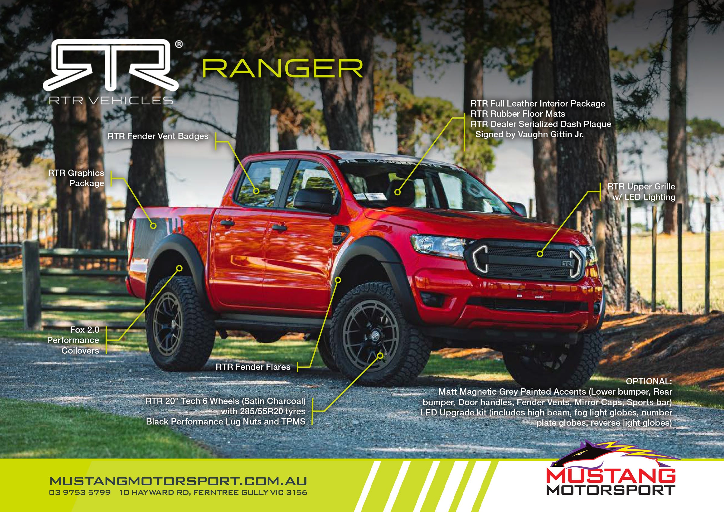 RTR products are made to an OE standard and their products are made with high precision. At Mustang Motorsport we strive for excellence and will reproduce the Ranger RTR to a factory finish.